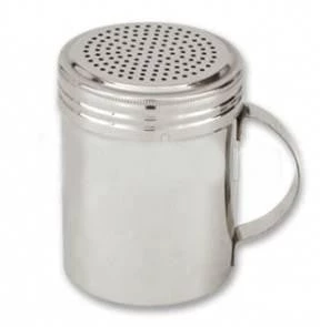 Stainless Steel Cocoa Shaker. Features a coarse stainless steel screw on top.