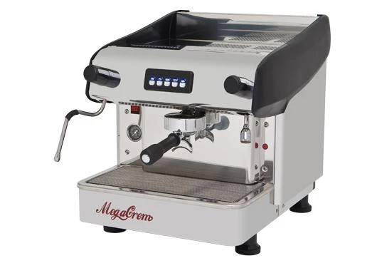 Compact automatic espresso coffee machine with 1 group, electronic switchboard to control the coffee dosages volumetrically, with automatic water filling and copper boiler with 6 litres capacity and heat exchanger per group. One steam tap (stainless steel) and one hot water tap.