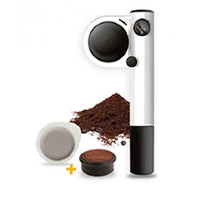 The hand pump technology is similar to that of a bike pump, and the pressure (up to 16 bars) is stored in the device while you load the coffee. The HandPresso Pump works with ground coffee of your choice or ESE pods, giving you a wide range of options to choose from. The water reservoir can hold up to 50ml of hot water from a kettle, and the end of the pump acts as a tamp for the coffee.