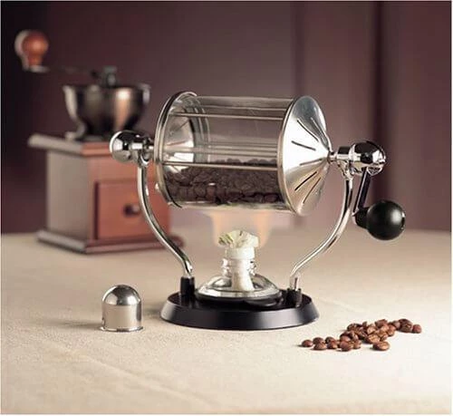 Typically a 12-15 minute process, this glass encapsulated roaster comes with its own alcohol burner and showcases the whole process beautifully.