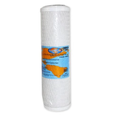 The OMB-Series carbon block replacement cartridge by Omnipure feature the new OmnipureBlock media. This high quality carbon block media is manufactured from raw materials to precise specifications. The OMB-Series is designed to fit in standard 10 inch filter housings. Elements are finished with a single layer of spun-bonded polyproylene netting. Polypropylene end caps with compression gaskets are standard.